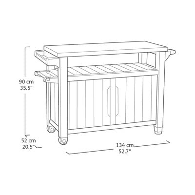 Сгъваемата маса на Keter ще се превърне в незаменим инструмент във вашата кухня на открито. В допълнение към практичното отделение за съхранение, в което можете да съхранявате всичко необходимо за летните барбекюта, масата предлага работен плот от неръждаема стомана, идеален за приготвяне на всички необходими съставки.