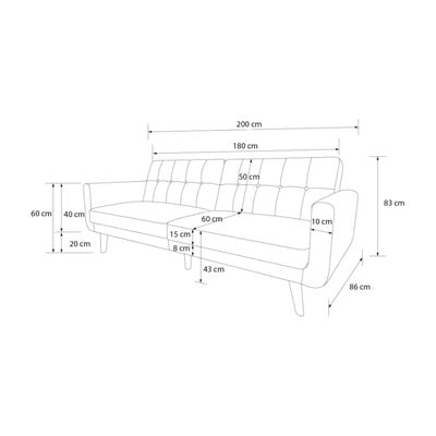 Забележка: диванът не разполага с отделение за съхранение.