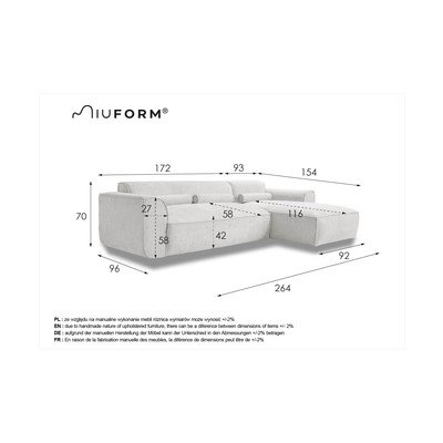 Десен ъгълТъмносивТриместенШирина 264 cmДълбочина 154 cmДълбочина на седалката 58 cm