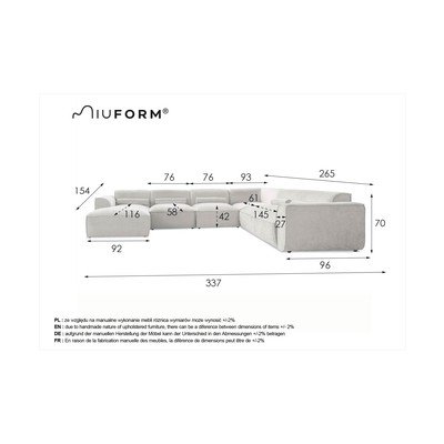 Десен ъгъл/U формаТъмносивДругиШирина 337 cmДълбочина 265 cmДълбочина на седалката 58 cm