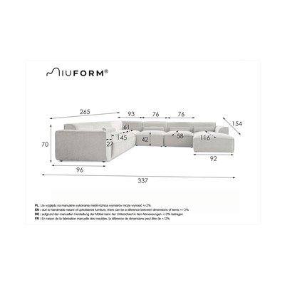 Ляв ъгъл/U формаТъмносивДругиШирина 337 cmДълбочина 265 cmДълбочина на седалката 58 cm