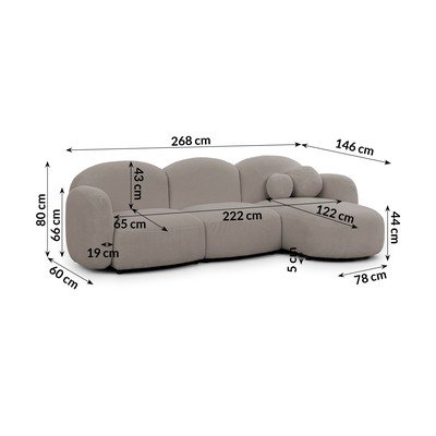 Светлокафяв ъглов диван от букле (десен ъгъл) Orbit – Ropez
