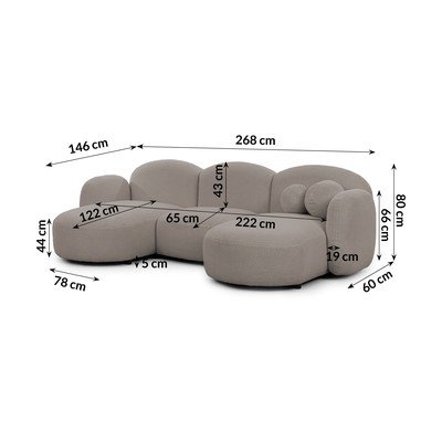 Сив ъглов диван от букле (десен ъгъл) Orbit – Ropez