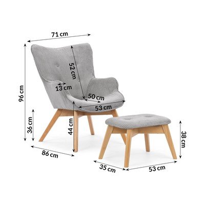 Бежов фотьойл с табуретка от рипсено кадифе Niko – Ropez