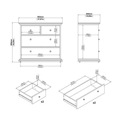 Бял нисък скрин 96x87 cm Paris – Tvilum