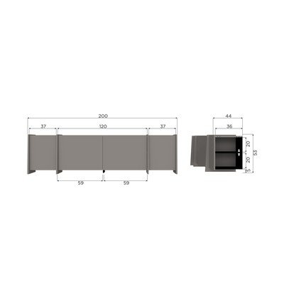 От декор от ясен, шперплат, oбработка на повърхността: фурнир, сива, ширина 200 cm, височина 53 cm, дълбочина 44 cm