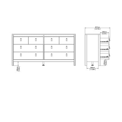 Колекцията мебели за съхранение Madrid е особено привлекателна благодарение на кожените си дръжки, които са много популярни в момента. Ако обаче искате по-класически вид, просто изберете кръглите метални дръжки, които също са включени в комплекта.