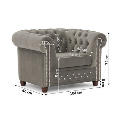 Честърфийлд, кадифено, сиво