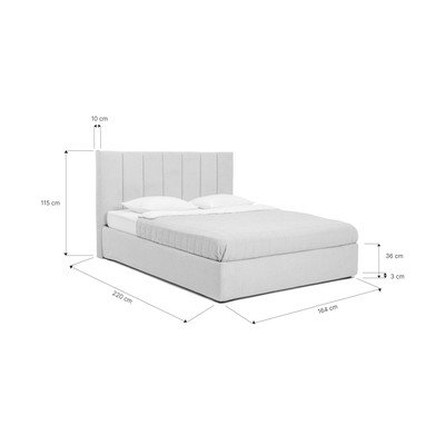 Дизайнерско тапицирано легло с практично пространство за съхранение, накланяща се ламелна скара и удобна тапицирана табла. Изключително лесният монтаж, висококачествените, издръжливи материали и високата товароносимост го правят идеален избор за ежедневен комфорт и стилен интериор.