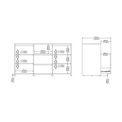 Скринът с чекмеджета Next от Tvilum съчетава скандинавски дизайн с практичност. Той разполага с две затворени отделения с регулируеми рафтове, един отворен рафт и две просторни чекмеджета. Белите елементи контрастират елегантно с рамката от дъб. С допълнителна дълбочина от 48 см той осигурява много място за съхранение.