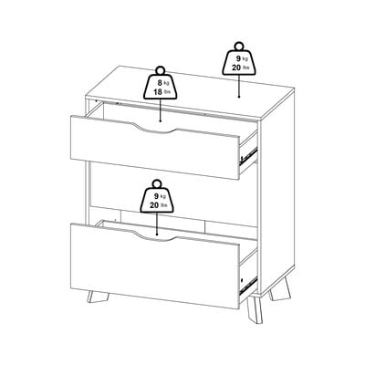 С размери 79x92x40 см той предлага три просторни чекмеджета на колелца за лесно използване. Белите фронтове на чекмеджетата контрастират с естественото дъбово покритие на рамката, създавайки модерна и универсална визия. Минималистичният дизайн с изрязани отвори вместо дръжки и наклонените крака придават стил на скрина.