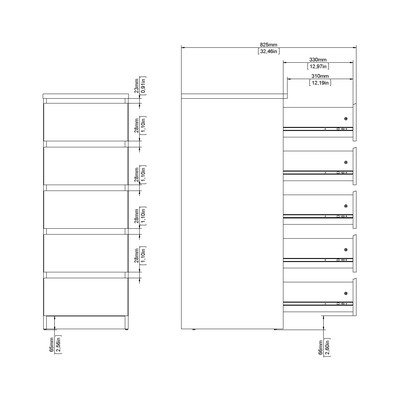 С тесните си размери от 40x111x50 см той е подходящ за по-малки пространства. Шестте чекмеджета с гладки стоманени дръжки осигуряват достатъчно място за вашите вещи. Изчистеният дизайн без дръжки придава на скрина модерен вид и подчертава простотата му.