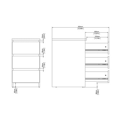 С размери 40x70x50 см той предлага компактно пространство за съхранение, което се вписва в спалнята и всекидневната. Трите просторни чекмеджета на метални водачи осигуряват лесно отваряне и затваряне. Минималистичният дизайн без дръжки придава на скрина модерен вид. Естественият дъбов декор е лесен за интегриране в различни интериорни стилове.