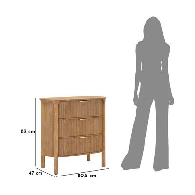 Скринът с чекмеджета Gothenburg на Mauro Ferretti е елегантна мебел, която ще внесе естествен чар в интериора ви. Той е изработен от елхово дърво и впечатлява със заоблените си форми и три просторни чекмеджета.