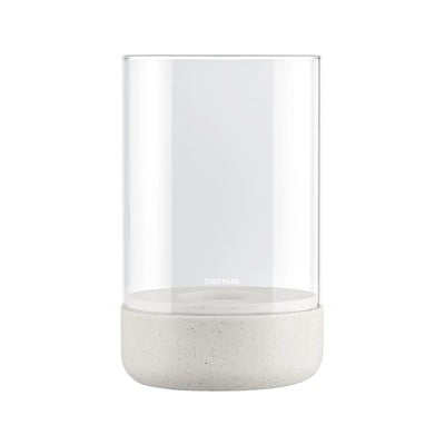 Дизайнът му позволява да се използва като самостоятелен декоративен елемент или да се комбинира с други модели за завършена визия. Благодарение на изчистената си цилиндрична форма със стъклена част и масивна основа за поставяне на свещта, тя се вписва в различни интериорни стилове.