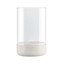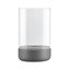 Дизайнът му позволява да се използва като самостоятелен декоративен елемент или да се комбинира с други модели за завършена визия. Благодарение на изчистената си цилиндрична форма със стъклена част и масивна основа за поставяне на свещта, тя се вписва в различни интериорни стилове.
