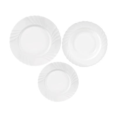 Този трапезен комплект от опалово стъкло се състои от следните съдове: