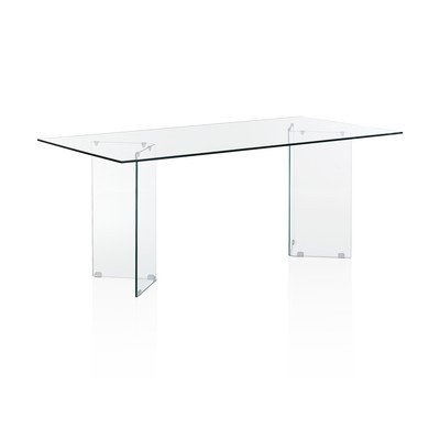 Стъклената трапезна маса Kaya е елегантна и модерна мебел, която ще придаде на интериора ви ефирен и лек вид. С размерите си от 90 x 180 см тя осигурява достатъчно пространство за удобно хранене. Прозрачният стъклен плот създава илюзията за повече пространство и позволява на пода или килима под масата да изпъкнат.