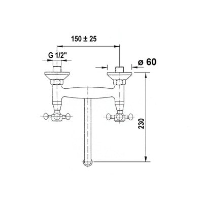 Този месингов стенен смесител с кран за управление впечатлява с ретро дизайна си. Той е оборудван с долно въртящо се рамо. Разстоянието между отворите за вода е 150 мм.