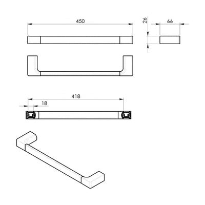 Стенна, месингова, в златист цвят, 45x7 cm, височина 3 cm