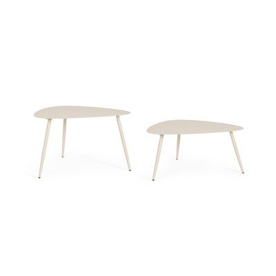 Комплектът Yvonne на Bizzotto включва две стоманени градински масички за кафе във вечно бежово покритие. Масичките се различават по височина - едната е 35 см, а другата - 45 см. Благодарение на финия дизайн с тънки крачета и органичната форма на плота масичките създават елегантно и ефирно впечатление. Те могат лесно да се поставят на по-малък балкон или тераса.
