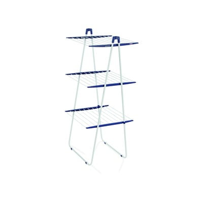 Независимо дали живеете в малък апартамент, или просто искате да спестите малко ценно пространство. Тази практична триетажна сушилня се вписва особено добре в неизползвани ъгли или душ кабини, като ви предоставя до 19 м пространство за сушене, което е достатъчно за 2 пратки пране. При необходимост обаче средното ниво може да се сгъва надолу, което го прави подходящо за окачване на дълги дрехи.