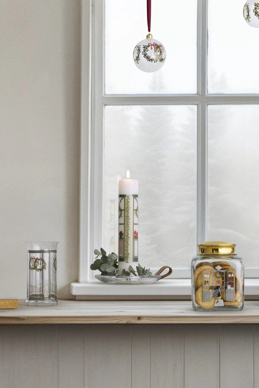 От 1981 г. насам Holmegaard всяка година представя нова коледна колекция с подробен дизайн от талантливата художничка Джета Фрьолих. Темата за 2024 г. е скандинавската празнична кухня. Тази адвентна свещ, номерирана от 1 до 24, за да отброява дните до Бъдни вечер, също е украсена в този дух.