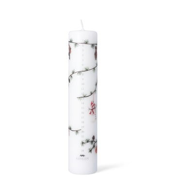 Мотивите, които ще откриете върху свещта, са дело на художничката Рике Якобсен, която ги е нарисувала с помощта на акварелни техники. Всички изображения са красиво аранжирани върху кедров клон с лиственица, а свещта, разбира се, е маркирана с числата от 1 до 24.