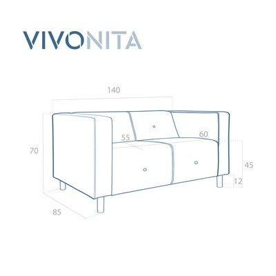Кадифен, лилав, двуместен, ширина 140 cm, дълбочина 85 cm, дълбочина на седалката 55 cm