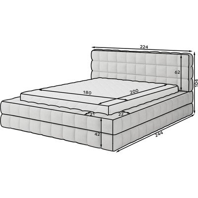 180x200 cm, с място за съхранение, с включена подматрачна рамка, тапицирано, от прежда с примки от букле, светлокафяво