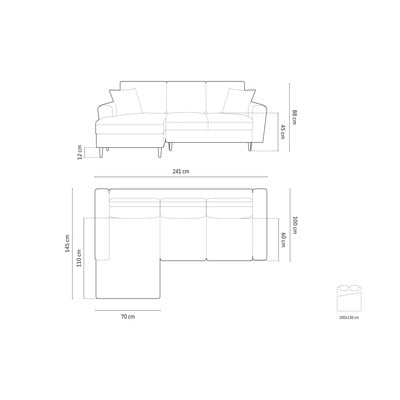 Кадифен, сгъваем/с място за съхранение, ляв ъгъл, светлосин, триместен, ширина 241 cm