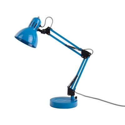 С метален абажур, метална, за контакт, синя, височина 52 cm