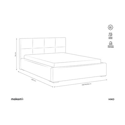 Светлосиво кадифено двойно легло 140x200 cm тапицирано с място за съхранение и включена подматрачна рамка Hiko – Makamii