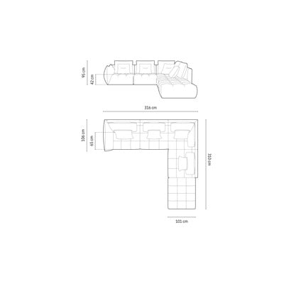 Десен ъгъл/L форма, сив, други, ширина 316 cm