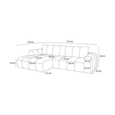 Ляв ъгъл, светлосив, триместен, ширина 272 cm, дълбочина 153 cm, дълбочина на седалката 54 cm, …