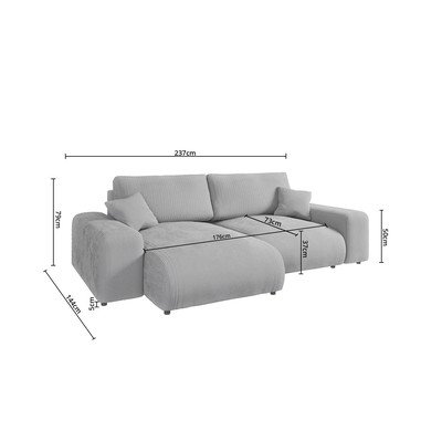 Светлосив ъглов диван от рипсено кадифе (променлив) Justin – Ropez