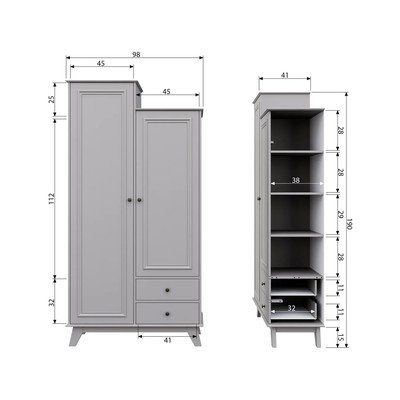 От масивен бор, светлосив, ширина 98 cm, височина 190 cm, дълбочина 41 cm