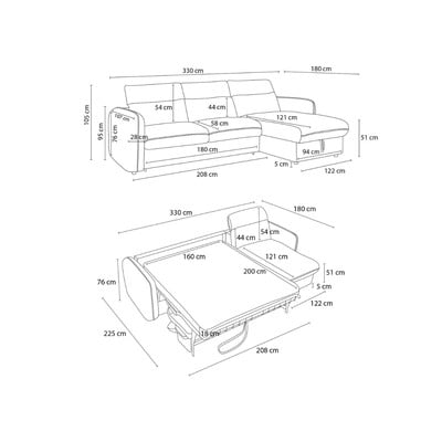 За ежедневно спане/позициониране/сгъваем/с място за съхранение, десен ъгъл/ляв ъгъл/променлив, сив, други, ширина 330 cm