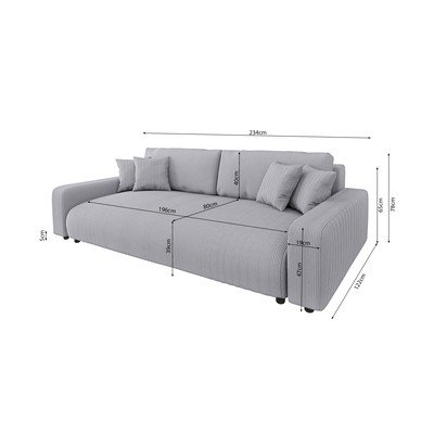 От рипсено кадифе, сгъваем/с място за съхранение, светлосив, триместен, ширина 234 cm