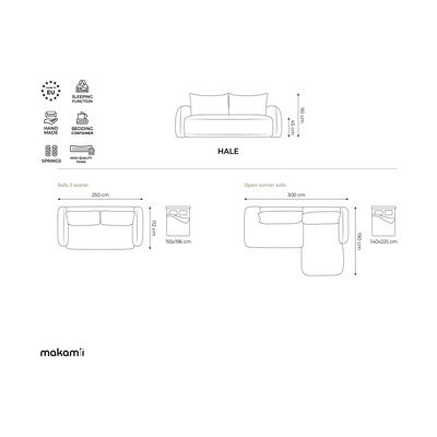 Светлосив сгъваем ъглов диван (десен ъгъл) Hale – Makamii