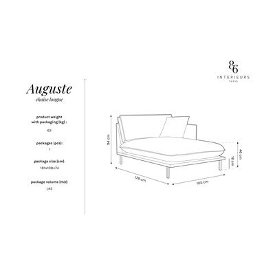 Създайте място за почивка у дома и четете любимата си книга. Столът за отдих Auguste от Interieurs 86 впечатлява с елегантния си вид, допълнен от метална основа. Заедно те образуват модерен дизайн, който лесно можете да съчетаете с вашия интериор. Той е приятен на допир и достатъчно издръжлив, за да издържи дълго. Матовата кадифена повърхност се допълва от хидрофобен слой, който не позволява на случайни разливи да проникнат вътре.