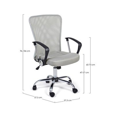 Тапициран, подвижен/с регулируема височина/с подлакътници, светлосив, капацитет на тежестта 110 kg, височина на седалката 57-57 cm