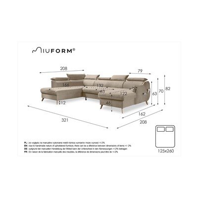 Позициониране/сгъваем/с място за съхранениеЛяв ъгъл/U формаСветлосивДругиШирина 321 cmДълбочина 208 cmДълбочина на седалката 63 cm