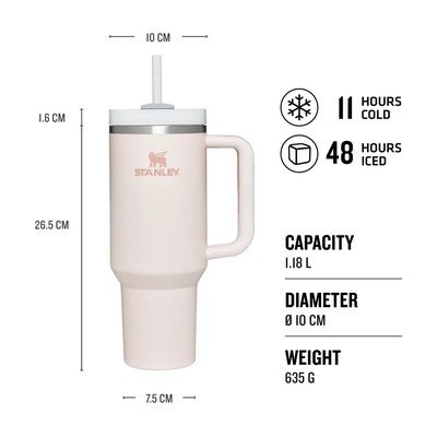 Термосът Quencher H2.O FlowState със сламка от Stanley е чудесен спътник за пътуване. Благодарение на меката си повърхност той е лесен за хващане и предлага изискан външен вид.