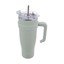 Нейният прозрачен пластмасов капак е снабден със силиконово уплътнение и предлага две възможности за пиене. Можете да използвате свободно поставената сламка за удобно отпиване, без да накланяте чашата, или да я извадите и да затворите отвора. Има и затварящ се отвор с панти за лесно пиене.