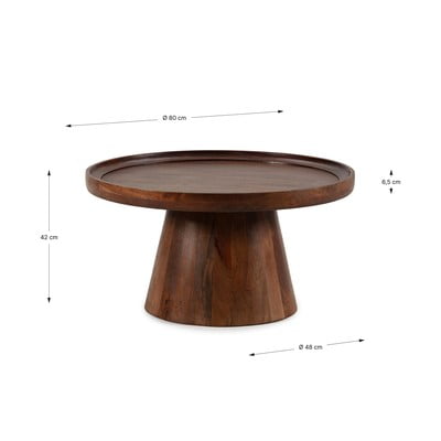 От масивно манго, тъмнокафява, ø 80 cm, височина 40 cm