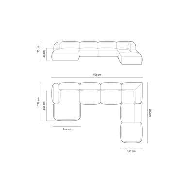 Модулен ъглов диван MartinaКадифен, десен ъгъл/U форма, тъмносин, други, ширина 406 cm