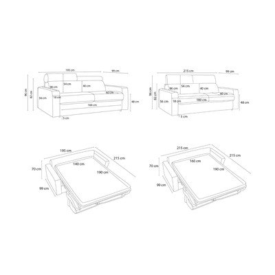 От рипсено кадифе, за ежедневно спане/позициониране/сгъваем, тъмносин, двуместен, ширина 195 cm