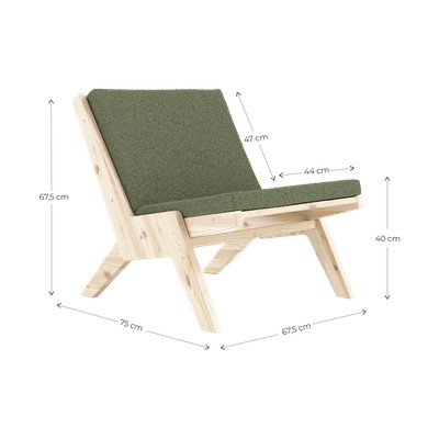 Рамката на фотьойла е изработена от масивен бор, а характерните наклонени крака придават лекота и стабилност.