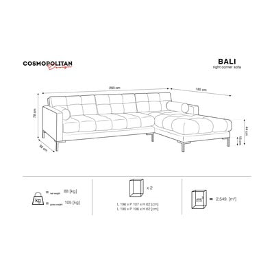 Насладете се на заслужен комфорт в диван, в който е удоволствие да се настаните. Колекцията Bali залага на просторна ъглова форма, ватирана тапицерия и кадифена повърхност, която е приятна на допир.